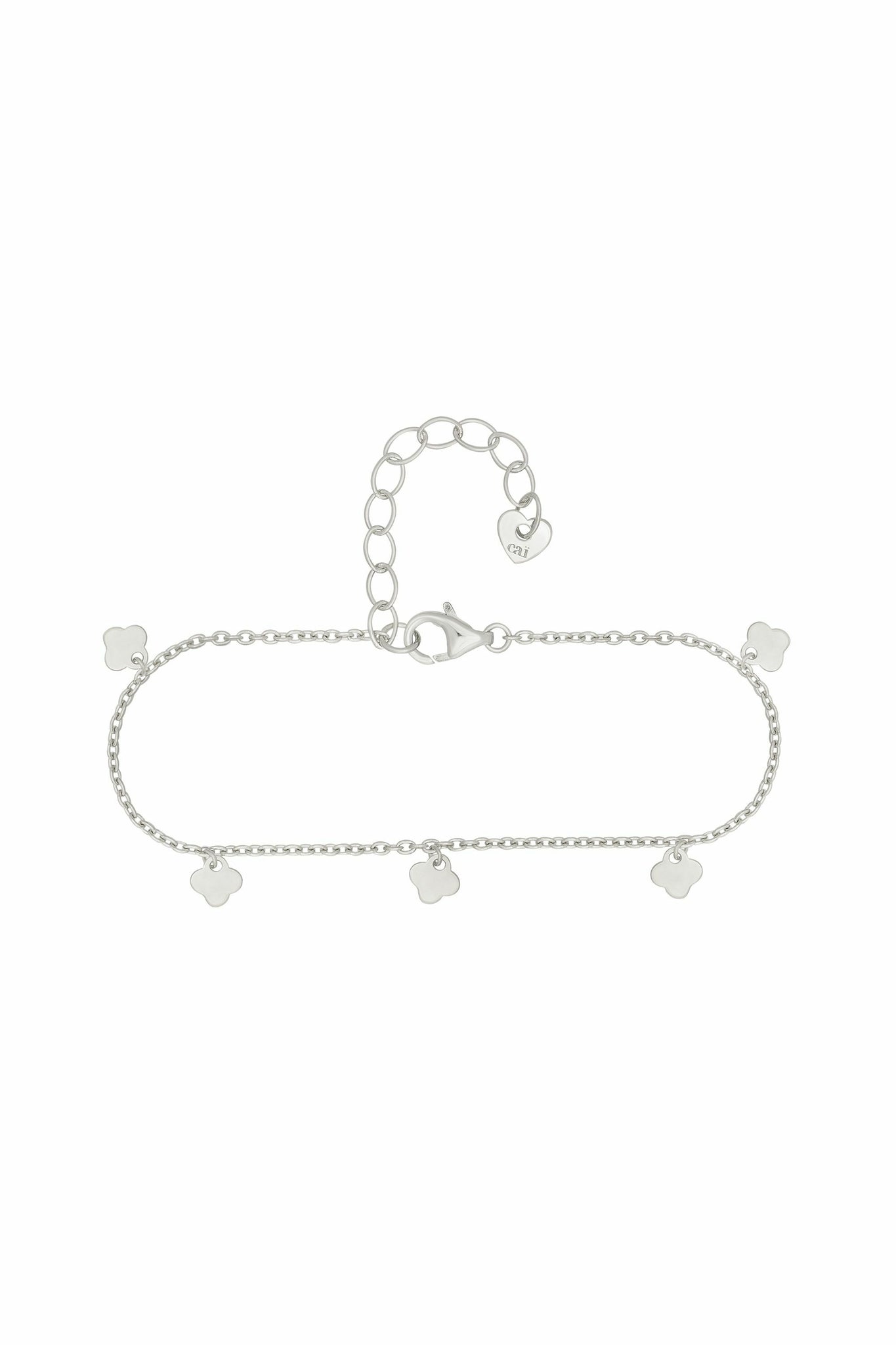 Armband 925 Silber rhodiniert. Das Silberarmband besitzt fünf kleine Kleeblattanhänger und hat eine Länge von 15+4cm.