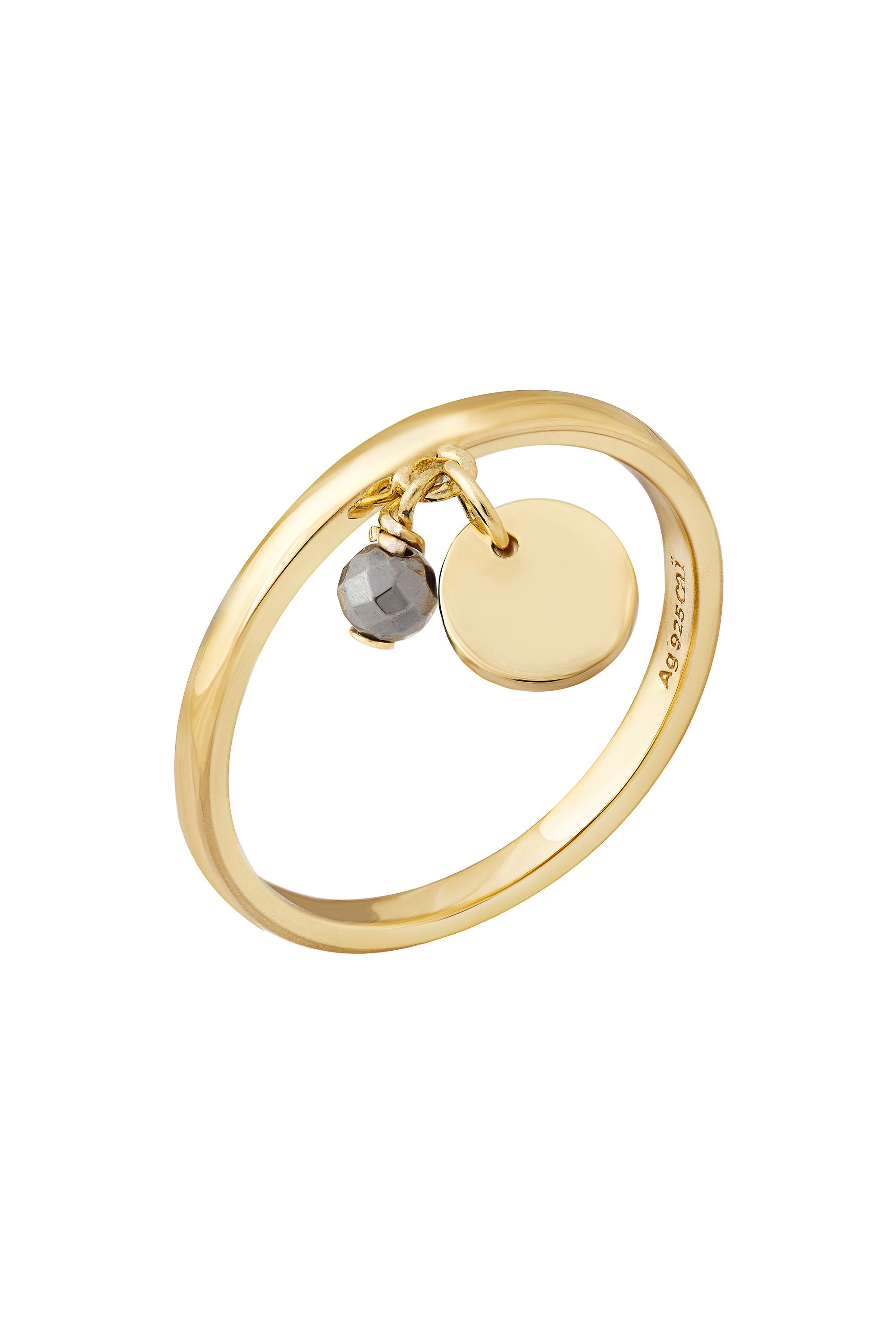 Ring 925 Silber vergoldet Anhänger Hämatit Plättchen