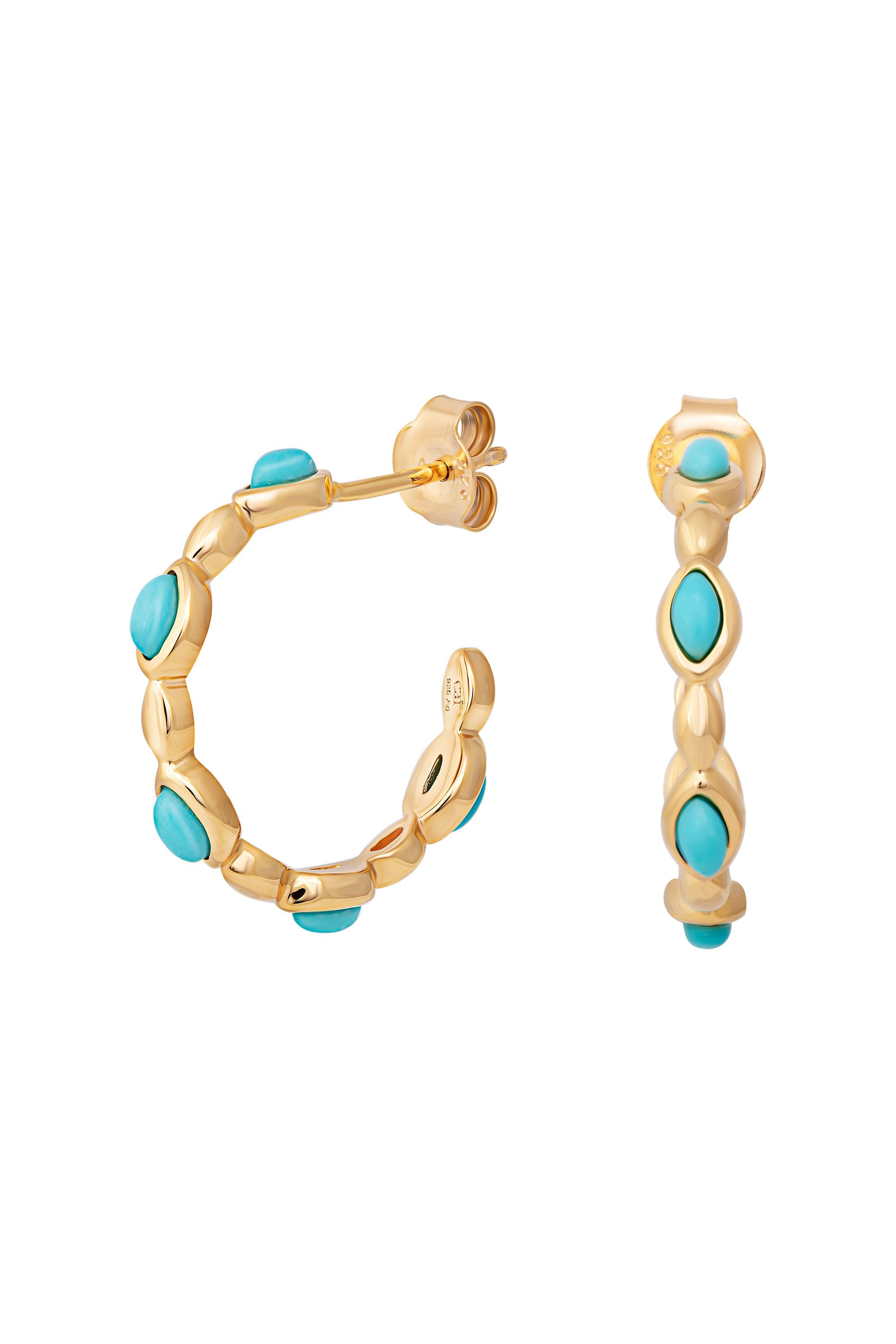 Creolen 925 Silber vergoldet mit Türkis Cabochons. Die Steckcreolen haben einen Durchmesser von 2cm.