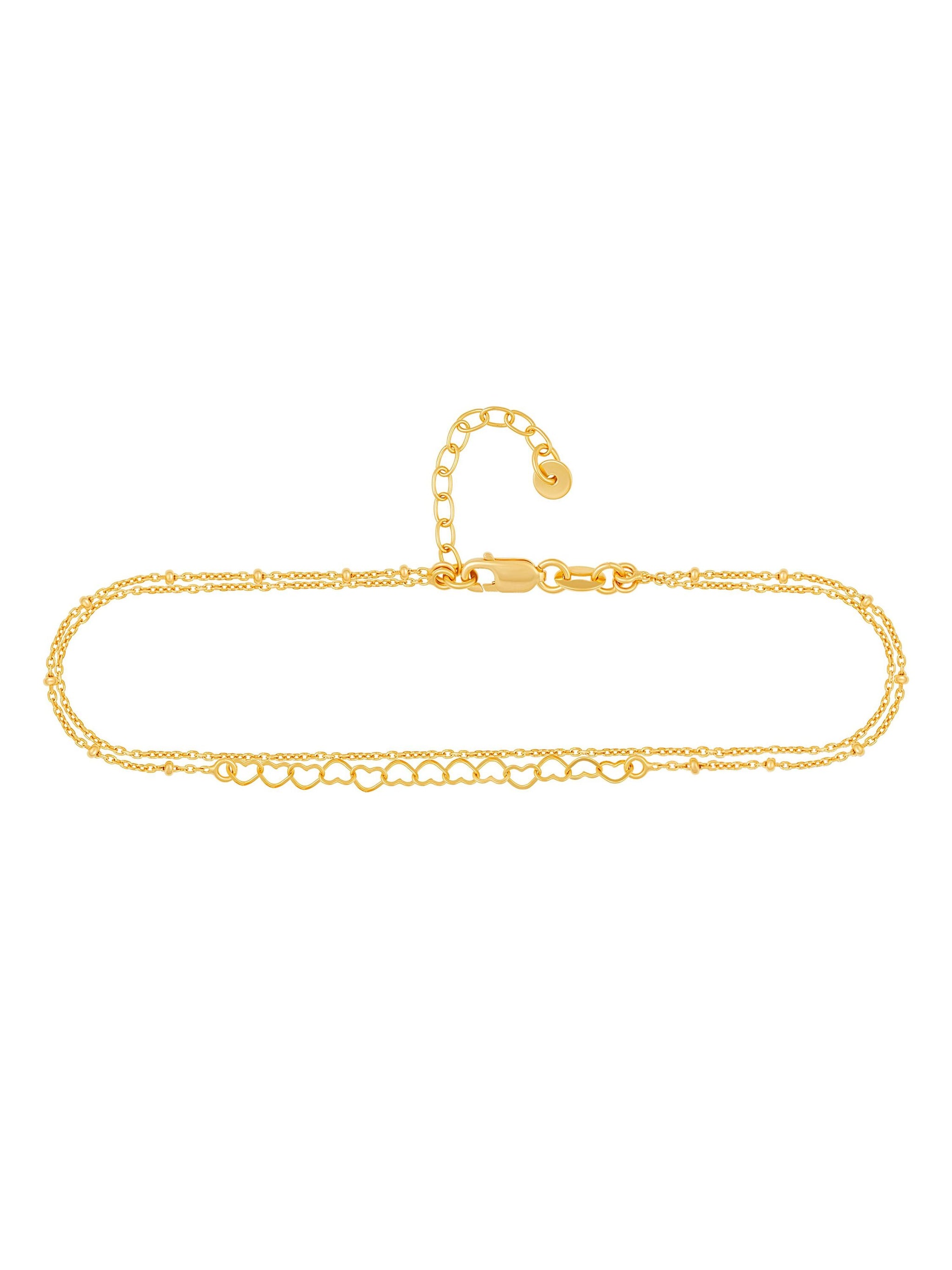 Fußkette 925 Silber vergoldet zweireihig Herzen