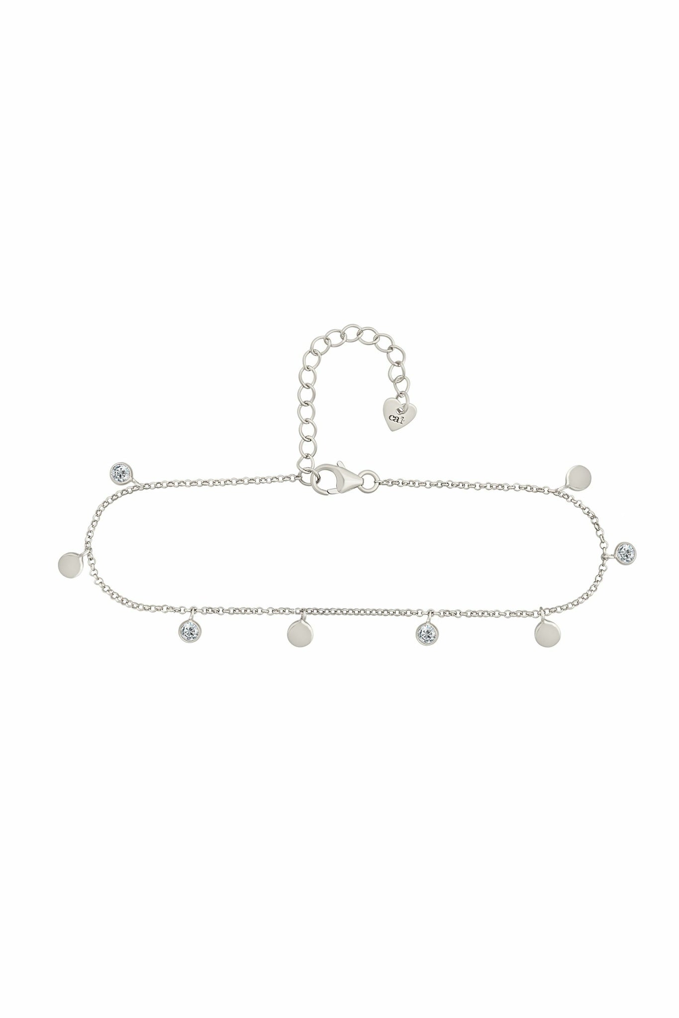 Fußkette 925 Sterling Silber rhodiniert Anhänger Plättchen Zirkonia