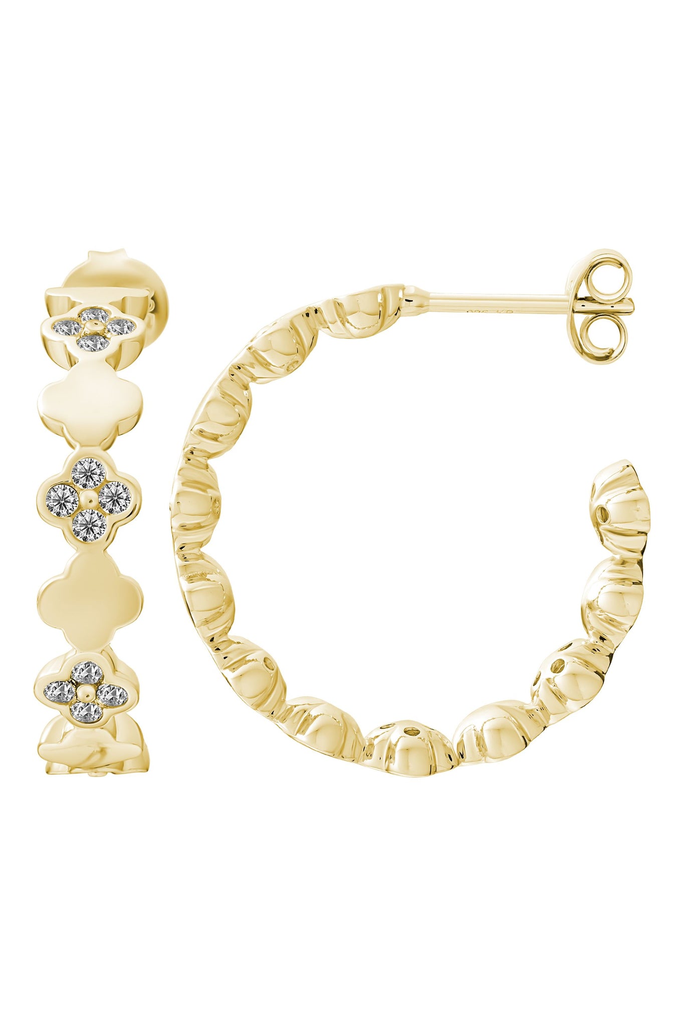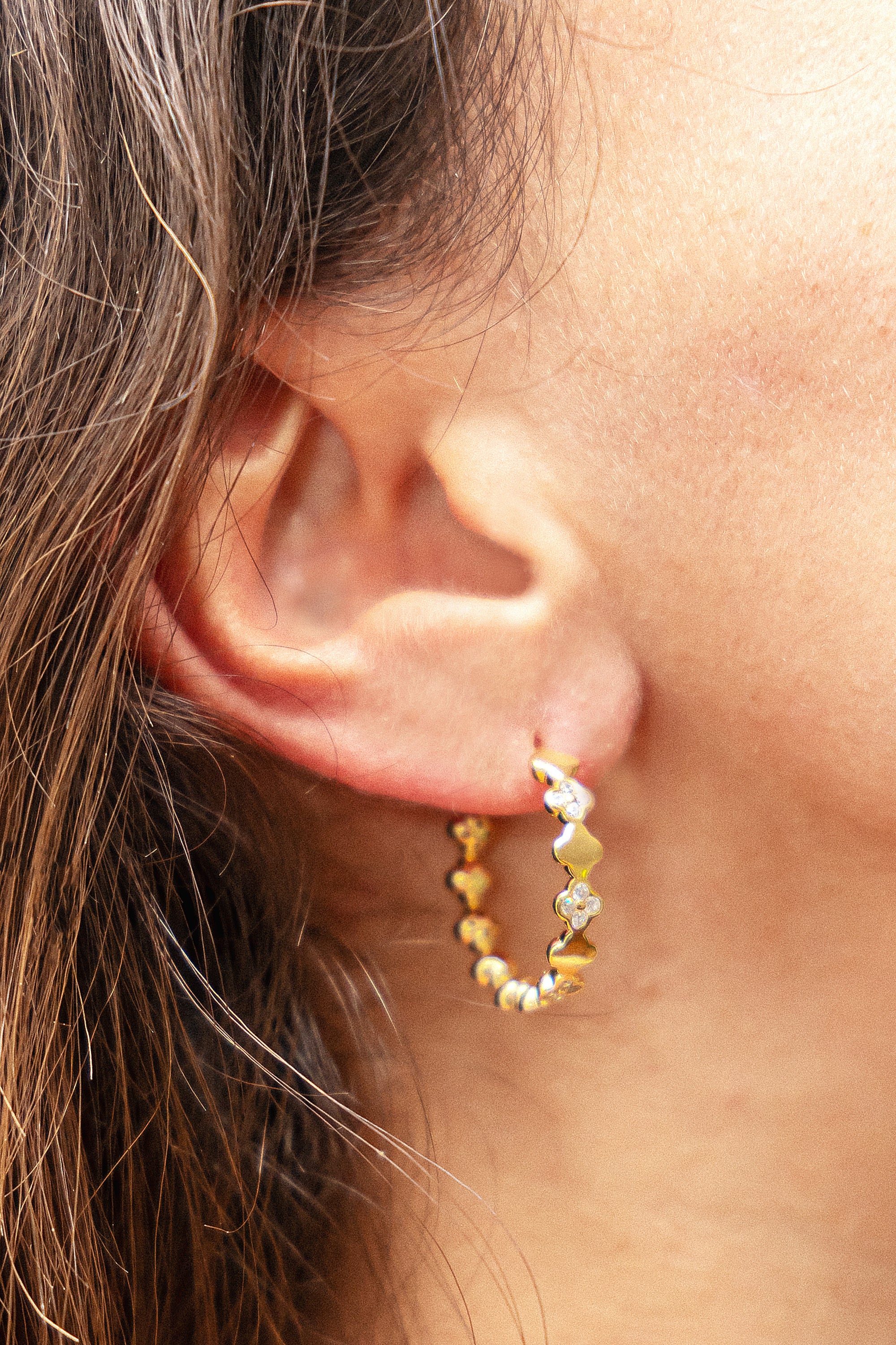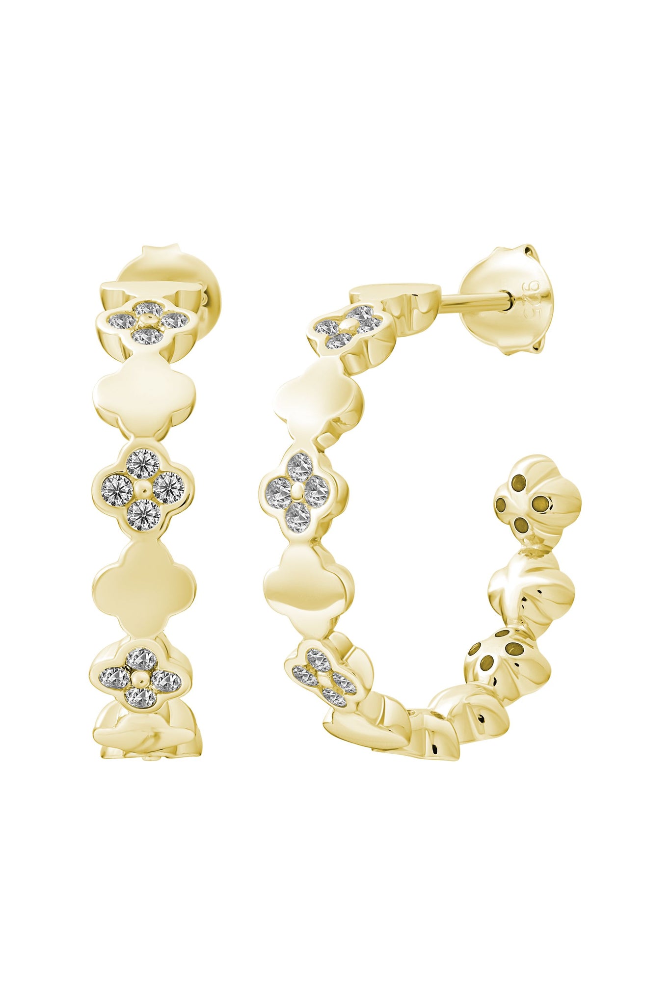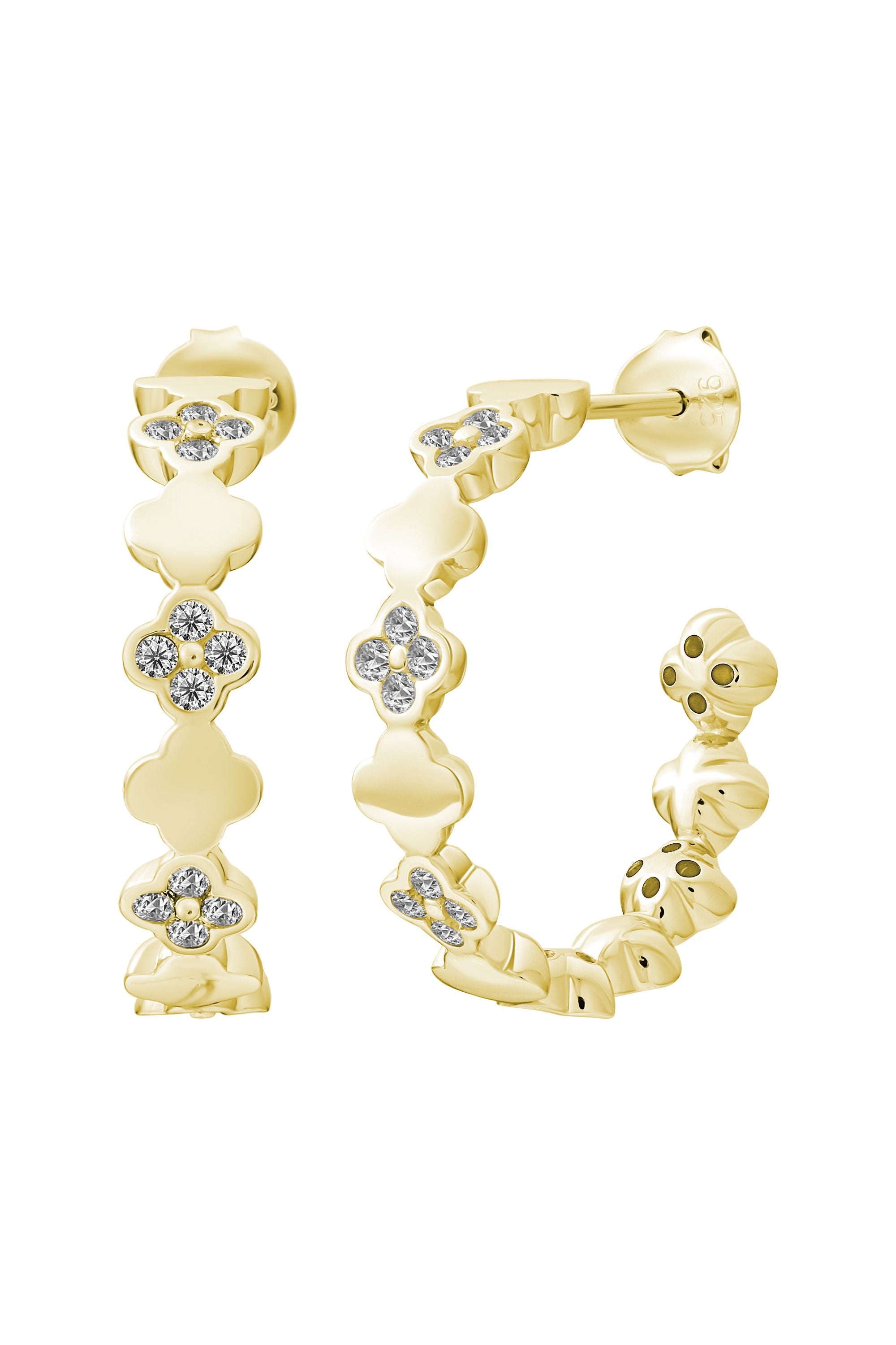 Creolen 925 Sterling Silber vergoldet Kleeblatt Zirkonia