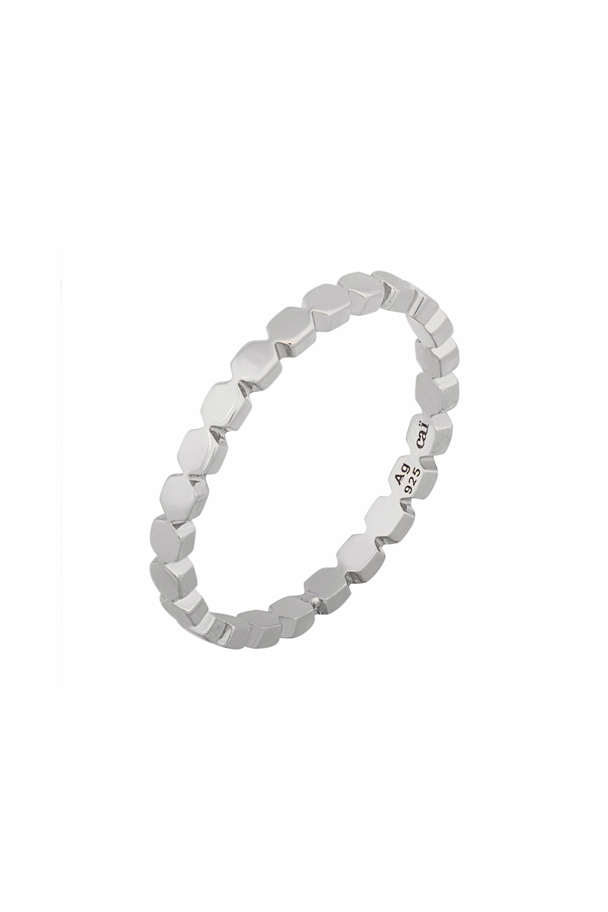 cai love - Ring in 925/- Sterling Silber rhodiniert aus aneinandergereihten Hexagon Formen. Der Ring hat eine Breite von 2,2mm. Ideal fürs Ring Stacking oder als Beisteckring.