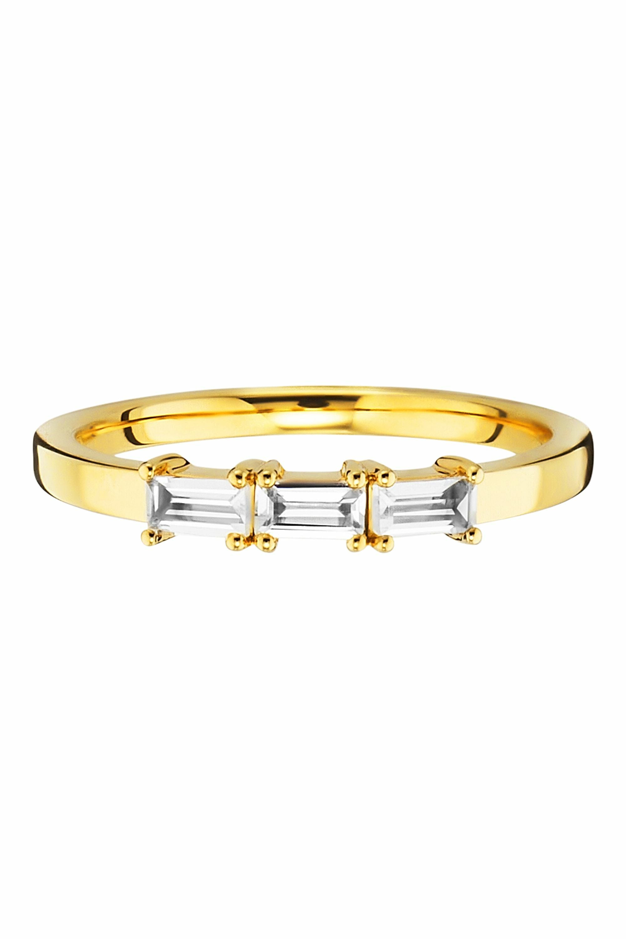 cai women - Damen-Ring in 925/- Sterling Silber vergoldet mit Weißtopas im Baguetteschliff aus der Kollektion 'Golden Retro'